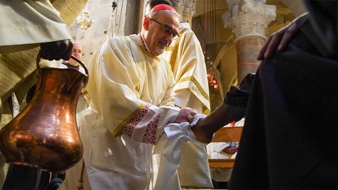 Σε μια Αγία Γη πληγωμένη από τον πόλεμο, «το Πάσχα αρχίζει έτσι: αφήνοντας τον εαυτό μας να αγαπηθεί και μαθαίνοντας να σκύβουμε πάνω στους άλλους».