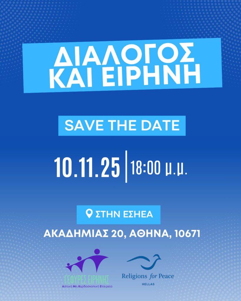 Οι οργανισμοί Religions for Peace Hellas και Γέφυρες Ειρήνης ΑΜΚΕ συνδιοργανώνουν ένα πάνελ με θέμα: «Διάλογος και Ειρήνη».