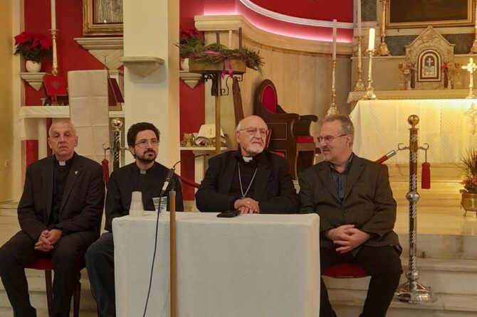 Στην λειτουργία προΐστατο ο Σεβασμιότατος Αρχιεπίσκοπος Καθολικών Αθηνών π. Σεβαστιανός Ροσσολάτος και συλλειτούργησαν μαζί του ο Αποστολικός Νούντσιος στην Ελλάδα Σεβασμιότατος π. Savio και πολλοί Ιερείς.