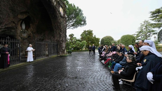 Μπροστά στο άγαλμα της Μακαρίας Αειπαρθένου Μαρίας της Λούρδης, ο Πάπας Λέων άναψε ένα κερί ως σημείο της προσευχής του «για όλους τους ασθενείς, τους οποίους σήμερα, Παγκόσμια Ημέρα του Ασθενούς, θυμόμαστε με ιδιαίτερη αγάπη», όπως είχε πει κατά την ακρόαση. Και απευθυνόμενος στους παρόντες στη Σπηλιά πρόσθεσε: