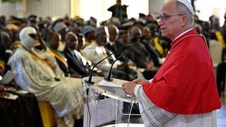 Πολλά είναι τα θέματα που αγγίζει ο Πάπας, αφού προηγήθηκε η ομιλία του Προέδρου του Καμερούν Πολ Μπιγιά, με τον οποίο είχε κατ’ ιδίαν συνάντηση. Ο Αρχηγός του κράτους υπογράμμισε ότι ο σημερινός κόσμος συγκλονίζεται από κρίσεις και συγκρούσεις που προκαλούν φτώχεια και αγωνία· γι’ αυτό ο διάλογος πρέπει να αντικαταστήσει τα όπλα και οι πόροι του πολέμου να κατευθυνθούν στην ευημερία των λαών.
