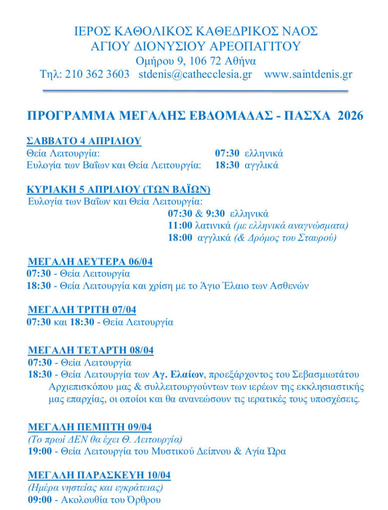 Ειδήσεις από την Καθολική Εκκλησία στην Ελλάδα
