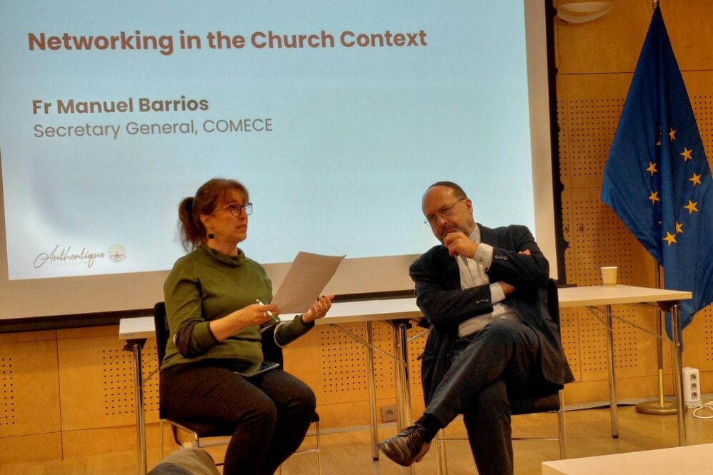 π. Manuel Barrios, Γενικός Γραμματέας της COMECE (φορέας που εκπροσωπεί τις Συνόδους των Καθολικών Επισκόπων των κρατών-μελών της Ευρωπαϊκής Ένωσης) ο οποίος μίλησε για το πώς λειτουργεί ο φορέας ως σύνδεσμος της Καθολικής Εκκλησίας με τα θεσμικά όργανα της Ε.Ε, με φορείς χάραξης πολιτικής και με εταίρους της κοινωνίας των πολιτών.