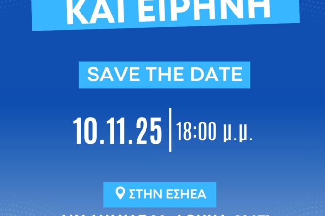 Οι οργανισμοί Religions for Peace Hellas και Γέφυρες Ειρήνης ΑΜΚΕ συνδιοργανώνουν ένα πάνελ με θέμα: «Διάλογος και Ειρήνη». Το πάνελ θα πραγματοποιηθεί την Δευτέρα, 10 Νοεμβρίου, στις 18:00, στην Ένωση Συντακτών Ημερησίων Εφημερίδων Αθηνών (ΕΣΗΕΑ), […]