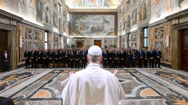 ΄       Ο Πάπας εξήρε το έργο του προσωπικού της ITA Airways, σημειώνοντας ότι, πέρα από επαγγελματισμό, προσφέρουν ένα «ήρεμο, σχεδόν οικογενειακό περιβάλλον», όπου «ο σεβασμός συνδυάζεται με την αφοσίωση».