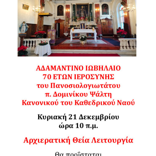Ενοριακός Ιερός Καθολικός Ναός Ευαγγελισμού της Θεοτόκου -Το Σάββατο 22 Νοεμβρίου 2025 πραγματοποιήθηκαν στην Ενορία μας τα εγκαίνια της έκθεσης φωτογραφίας, με θέμα τα Εκκλησιαστικά Όργανα της Ελλάδος. Αρκετοί συνενορίτες και φίλοι ένωσαν την προσευχή […]