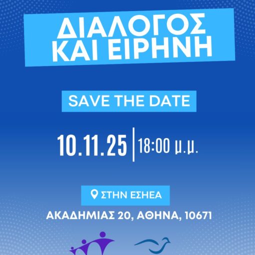 Οι οργανισμοί Religions for Peace Hellas και Γέφυρες Ειρήνης ΑΜΚΕ συνδιοργανώνουν ένα πάνελ με θέμα: «Διάλογος και Ειρήνη». Το πάνελ θα πραγματοποιηθεί την Δευτέρα, 10 Νοεμβρίου, στις 18:00, στην Ένωση Συντακτών Ημερησίων Εφημερίδων Αθηνών (ΕΣΗΕΑ), […]