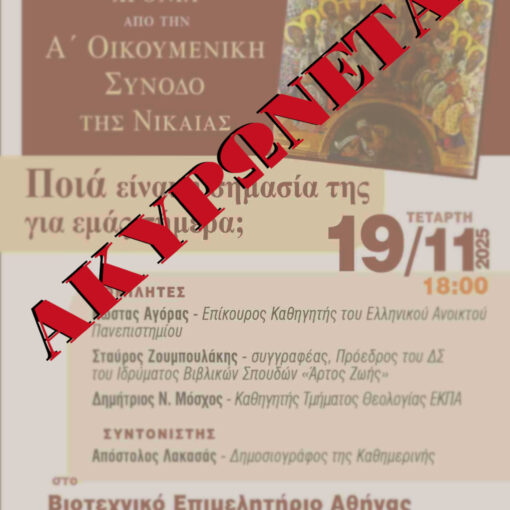 ΠΑΡΟΥΣΙΑΣΗ ΒΙΒΛΙΟΥ Πέμπτη 20 Μαρτίου, ώρα 19.00 AUDITORIUM (Σίνα 2-4) Θα μιλήσουν: Σεβασμιώτατος ΘΕΟΔΩΡΟΣ ΚΟΝΤΙΔΗΣ Αρχιεπίσκοπος Καθολικών Αθηνών Σεβασμιώτατος Μητροπολίτης Μεσσηνίας ΧΡΥΣΟΣΤΟΜΟΣ ΣΑΒΒΑΤΟΣΚαθηγητής Πανεπιστημίου Αθηνών ΠΡΟΚΟΠΙΟΣ ΠΑΥΛΟΠΟΥΛΟΣτέως Πρόεδρος της Δημοκρατίας, Ακαδημαϊκός ΕΥΑΓΓΕΛΟΣ ΒΕΝΙΖΕΛΟΣ πρώην Αντιπρόεδρος της […]
