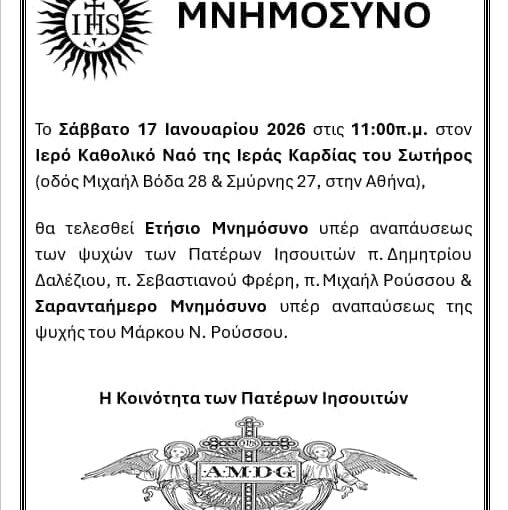 Ενοριακός Ιερός Καθολικός Ναός Ευαγγελισμού της Θεοτόκου -Το Σάββατο 22 Νοεμβρίου 2025 πραγματοποιήθηκαν στην Ενορία μας τα εγκαίνια της έκθεσης φωτογραφίας, με θέμα τα Εκκλησιαστικά Όργανα της Ελλάδος. Αρκετοί συνενορίτες και φίλοι ένωσαν την προσευχή […]