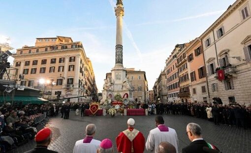 Ο Πάπας στην Πιάτσα ντι Σπάνια για το παραδοσιακό τελετουργικό της Αμιάντου Συλλήψεως Μπροστά στο άγαλμα της Παναγίας, ο Πάπας Λέων ΙΔ’ τέλεσε την καθιερωμένη ευλάβεια προς την αμιάντως συλληφθείσα Αειπάρθενο Μαρία. Περιτριγυρισμένος από περίπου […]