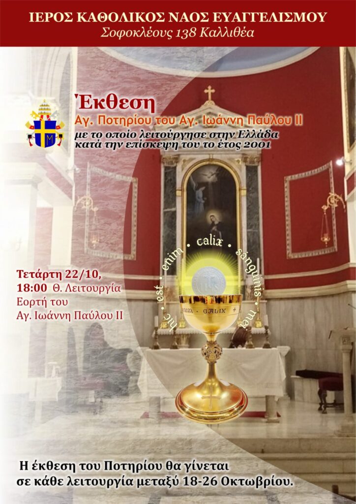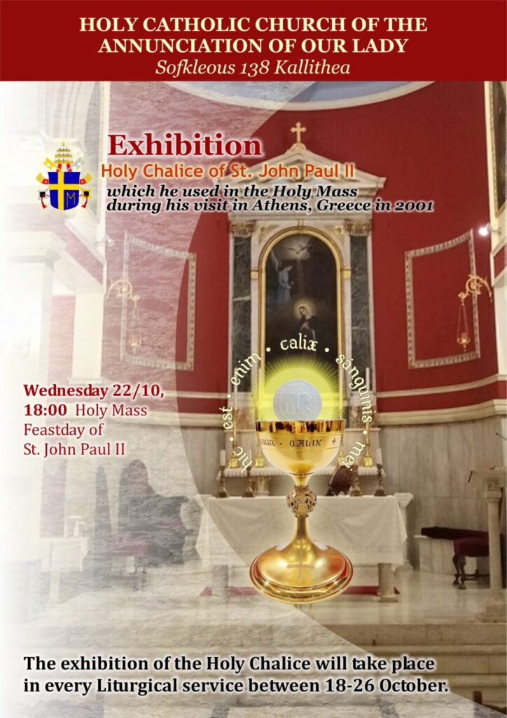 I.N. Ευαγγελισμού (Καλλιθέα), Έκθεση Αγ. Ποτηρίου του Αγ. Ιωάννη Παύλου ΙΙ